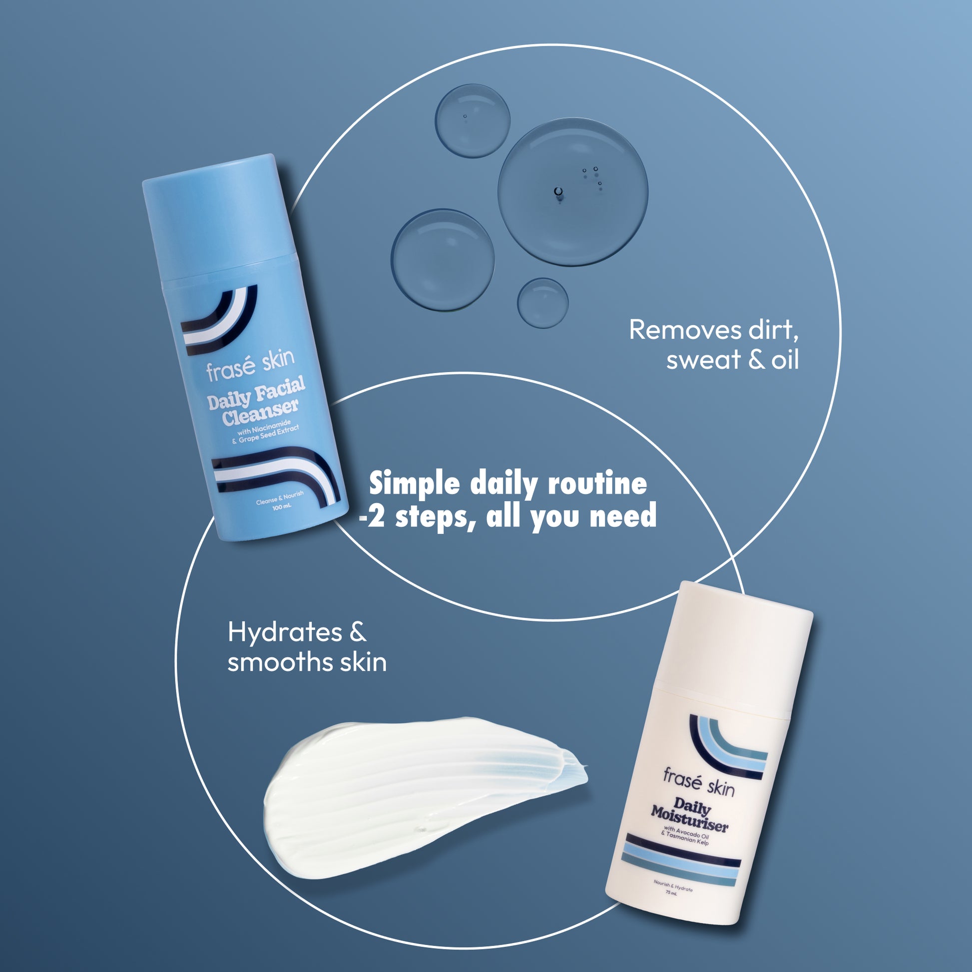 It’s a simple 2-step routine with our Daily Facial Cleanser and Daily Moisturiser – everything you need for clean, hydrated skin.